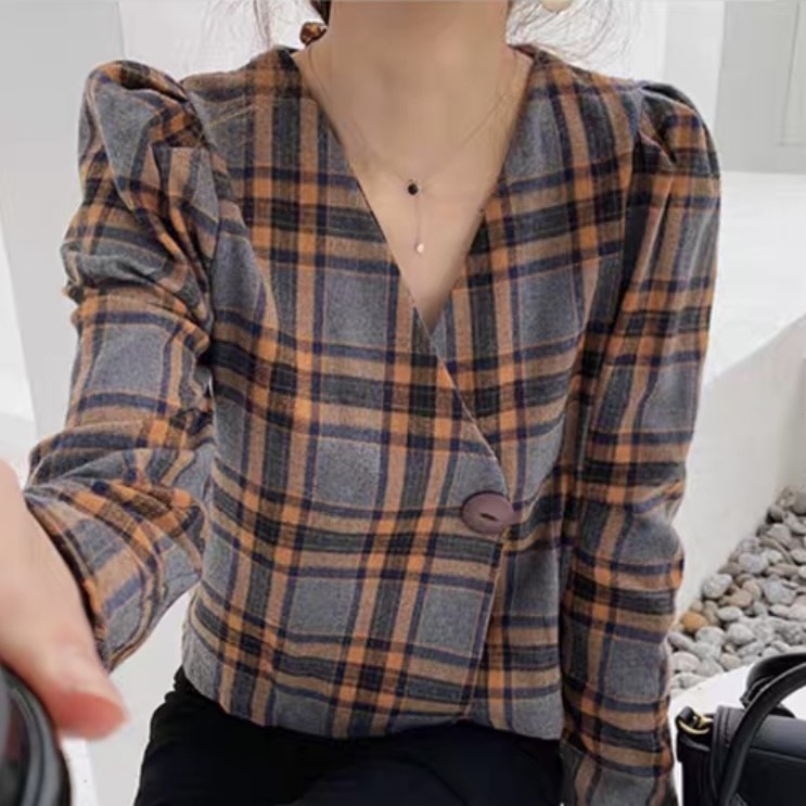 スモーキーなチェックがぬくもりのある印象のブラウス。 いまから秋にも大活躍!長く楽しめます。 スカートにインして、 パンツとあわせてジャケットのように着こなしても。